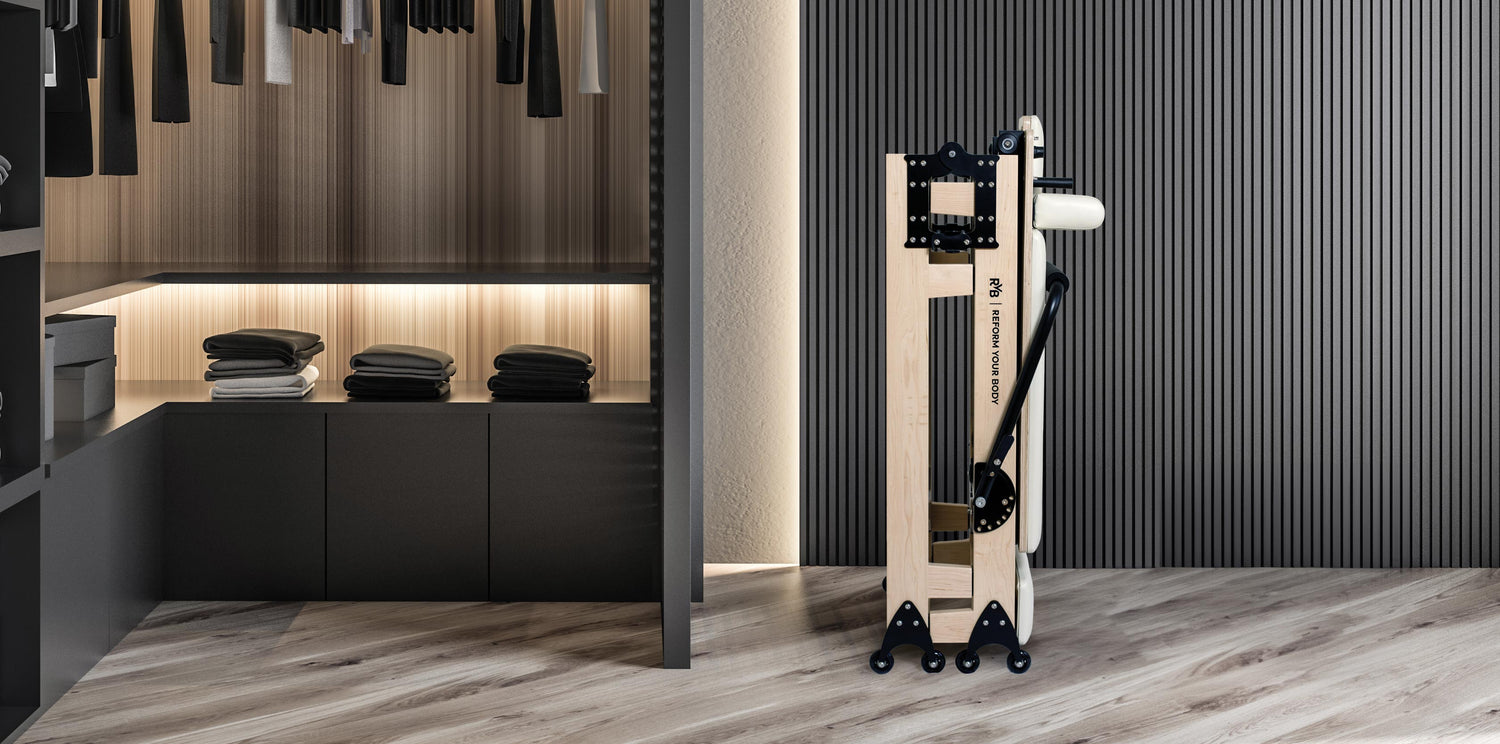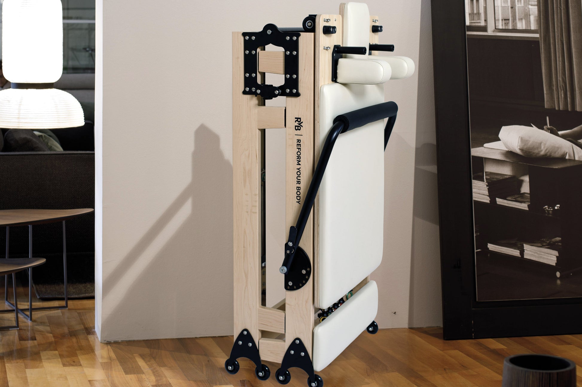 Che tu sia in uno studio professionale o comodamente a casa tua, il nostro Reformer è adattabile a ogni ambiente.